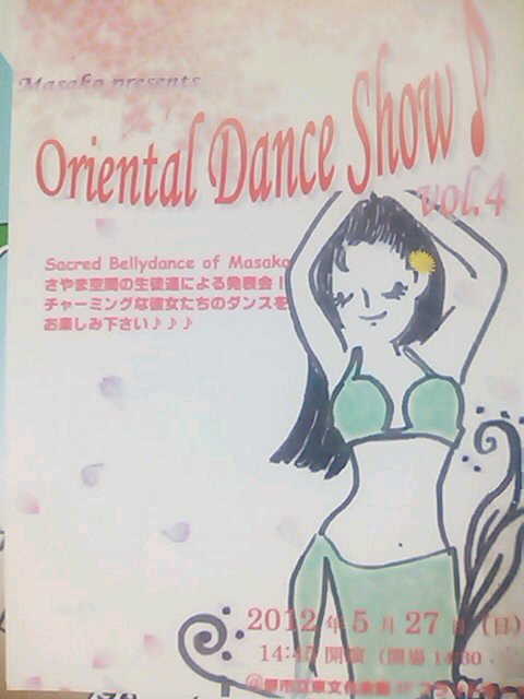 今年もたくさんの方に支えられ、助けられ、応援していただき、ここまでこれてるんだなぁって実感しております。 本当にありがとうございます!!!!! キラキラかわいい衣装を身にまとって、綺麗にメイクをし、日ごろのレッスンをお披露目する日が、今年もやってまいりました!!! 今年も5月に、本校さやま空間の生徒さんたちによる発表会、開催します! どどん!!!!!!!! 2013.5.26 (SUN) Sacred Bellydance of Masako さやま空間の生徒達による発表会! チャーミングな彼女たちのダンスをお楽しみ下さい♪ 時 間 :OPEN/14:30 START/14:45