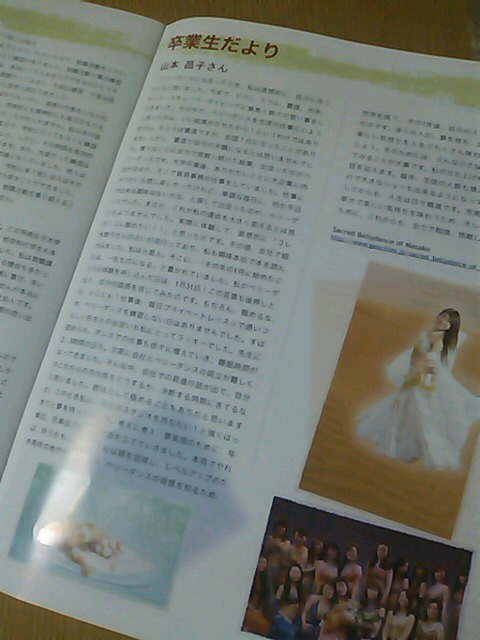 内容は。。 3月末に出版する大学雑誌のペガサスに卒業生代表として原稿を書いてくれないか。 !!!??? 大学を卒業してから、どうダンスと出会い、どう夢を実現させていったかを書いてほしい。 う~む。。 書けるかなぁ。。。私でよいのかなぁ。。。 不安を抱きながらも、当時のことを振り返りながら、ペンを走らせました。 結果。。。。。。 書いてよかった(^^)! 自分の人生をこの段階で振り返り文字にすることって、こんな機会を頂かない限り、そうない。 改めて自分のことを見直せたし、読み返すとはっきりと初心を思い出せる! こんな感じで出来上がりました◎ こんな素敵な機会を下さった先生に感謝です。 いい記念だ(≧v≦)♪ エヘッ |